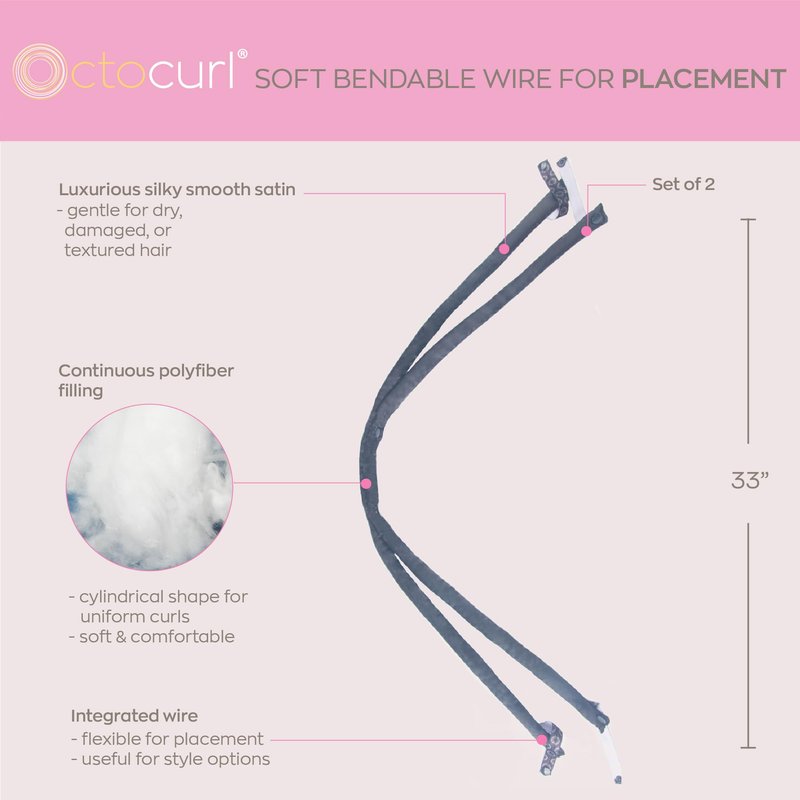 Octocurl Ribbon Curlers - Heatless Curling Headband - Flexible Hair Rollers for Heatless Curls - Soft Hair Curlers to Sleep In Curling Ribbon - Set of 2 (Satin - It’s Pitch Black)