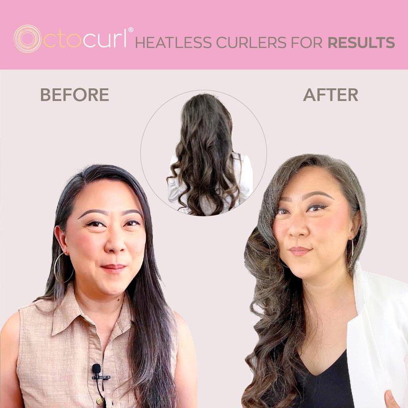 Octocurl Ribbon Curlers are an easy heat-free way to style your hair into loose, natural-looking curls. Here's how to use our ribbon curlers to style your hair. Step 1: Prepare Your Hair - Start with clean, dry hair. You can also apply a small amount of hair mousse or curl-enhancing cream if you want extra hold and definition. Comb your hair to remove any tangles. Step 2: Section Your Hair - Divide your hair into sections based on how many ribbon curlers you are using and how tight you want your curls to be. Smaller sections will create tighter curls, while larger sections will result in looser curls. Step 3: Dampen Your Hair - Use a water spray bottle to lightly dampen each section of hair. You want your hair to be slightly damp but not soaking wet. This will help set the curls. Step 4: Wrap Your Hair - Place the ribbon curler on top of your head and begin wrapping a section of hair around the ribbon curler, adding in more sections as you work your way down. Make sure to wrap the hair evenly and keep it taut but not too tight to avoid creases. Step 5: Secure the Ends - Use the elastic strap at the end of the curler to secure your ends. You can also snap it closed ahead of time and use it as an elastic loop. Step 6: Allow Your Hair to Dry - Leave the ribbon curlers in your hair until your hair is completely dry. You can either air dry or use a hairdryer on a low heat setting. Step 7: Remove the Ribbon Curlers - Once your hair is completely dry, carefully remove the ribbon curlers by gently unwrapping them from your hair. Step 8: Style Your Curls - Use your fingers to separate and style the curls. You can also apply a bit of hairspray for extra hold and shine. And there you have it! You should now have beautiful, heat-free curls using ribbon curlers. Practice makes perfect, so don't be discouraged if your first attempt doesn't turn out exactly as you'd like. Experiment with different sizes of sections and number of ribbon curlers to achieve your desired curl style.