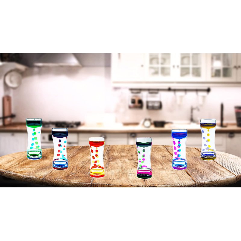 - 1.Great and Charming: Water Oil Liquid motion bubbler timer using sealing acrylic material, safety oil drop and appropriate amount of bubbles to create the perfect picture, give you unexpected surprise. Liquid timer Never runs out of energy. Just flip over and start again.- 6 different mixed colors Liquid timers.