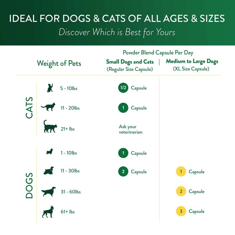 - Powder Blend is easier to administer at mealtime and designed for all small dogs and cats over 5lbs