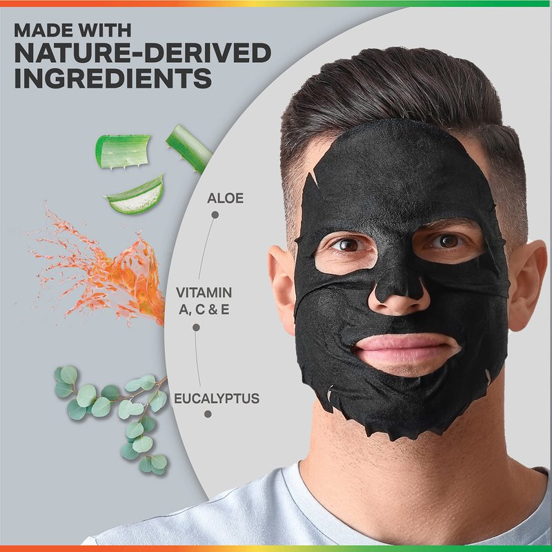 ODB for MEN Charcoal Essence Sheet Mask for Bearded Men 24 PK Hydrating Aloe & Purifying Vitamin Facial Mask for men with beards Mens Skin Care Sheet Masks for Face Mens Skin Care Kit Bulk Face Masks