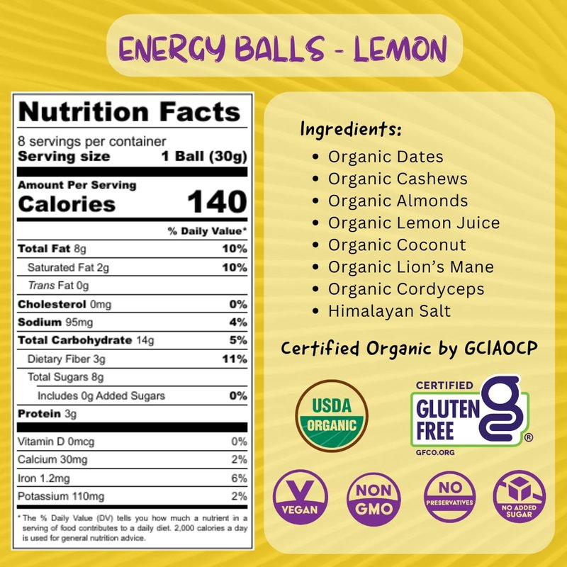 - ✔ BALLS NOT BARS = LESS WASTE: Energy balls are more fun, plus we can put more in each package, reducing waste from single use energy bars, supporting eco-friendly mushroom snacks.