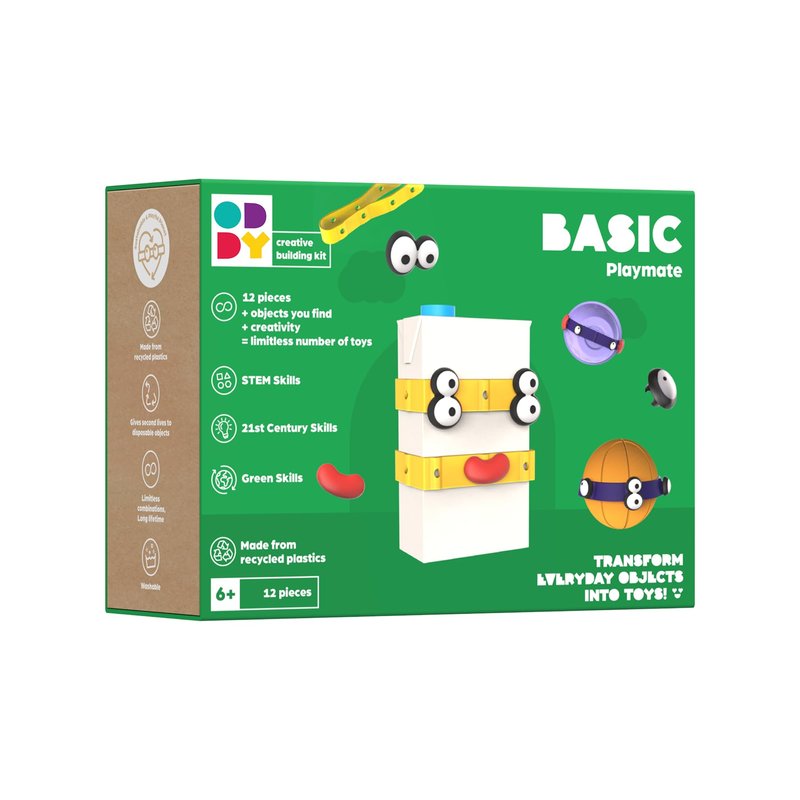 Turn everyday objects into toys with the eco-friendly Oddy Basic Playmates Creative Building Kit! This innovative toy building set allows children to upcycle items like tennis rackets and balls, turning them into imaginative creations such as butterflies, cute monsters, animals, creatures, and other characters. The Oddy Basic Playmates Creative Building Kit is designed for boys and girls aged 6 and up. It offers a new play system that encourages children to incorporate found objects into their play, fostering creativity and a unique perspective on upcycling. This hands-on play experience helps develop essential STEM (Science, Technology, Engineering, and Mathematics) skills as children create solutions to design challenges featured in the included playbook. Inside the kit, you'll find 12 unique pieces: 2 mouths, 4 eyes, 2 pairs of eyes, and 4 small flexible connectors. Each piece is designed to connect and build in countless ways, providing endless possibilities for imaginative play. The Oddy Basic Playmates Creative Building Kit not only promotes creative thinking and problem-solving but also teaches children the importance of sustainability and environmental awareness. By transforming everyday items into playful inventions, kids learn the value of reusing and recycling while having fun. Encourage your child's creativity, learning, and eco-consciousness with the Oddy Basic Playmates Creative Building Kit – where the only limit is their imagination!