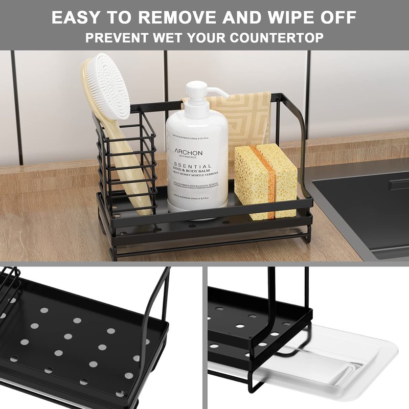- Removable Drip Tray: Made of plastic under the sink caddy organizer, prevent water droplets from brushes, scrubbers, rags, sponges, protecting your countertop from water stains.