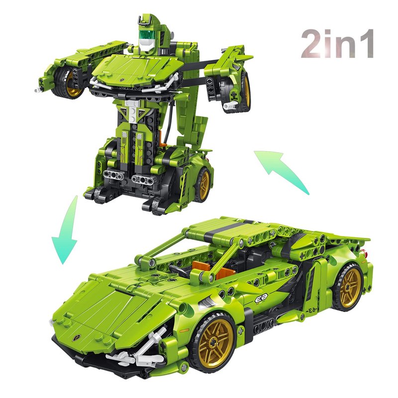 - The building blocks car set is 2 in 1 double mode which means you can transform racing car into a big robot. Easy conversion for kids 6 years old and up. Challenging this cool car model can improve kid’s logical thinking, patience and teamwork skills.