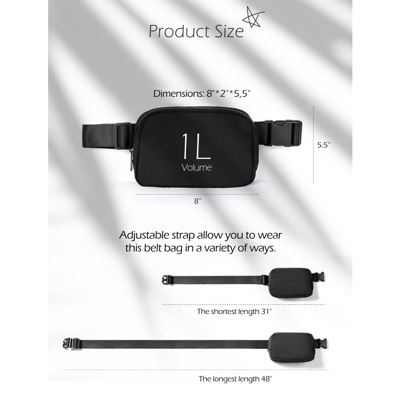 - ➤Versatile Style: Adjustable Strap allow you to wear this belt bag in a variety of ways. It can be carried as cross bag, shoulder bag, waist bag or handbag. It’s all up to you.