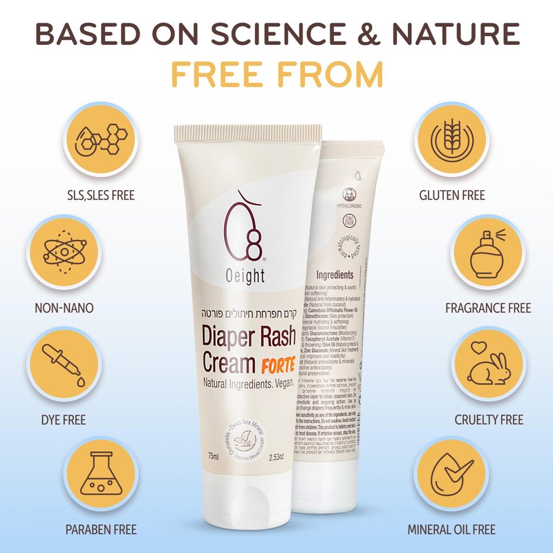 - Safe and Free from Harsh Chemicals: Oeight 75 ml unscented Diaper Rash Cream Forte is free from parabens, SLS & mineral oils. Its botanical-based formula features Dunaliella Salina & Septonic M3