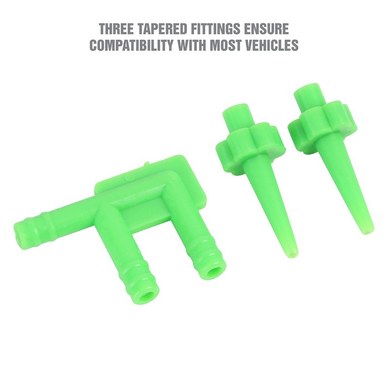 - FITS MOST VEHICLES: Our specially tapered fittings work on most vehicles; The hoses hold firmly to the durable brake bleeder bottle and tapered fittings to create a no-mess operation that keeps your components clean of brake fluid