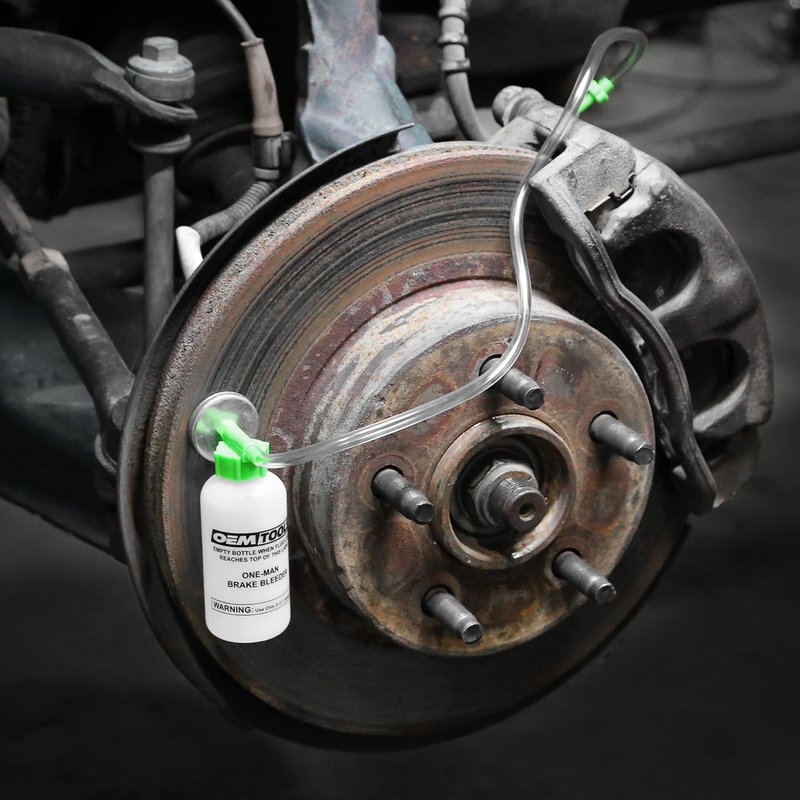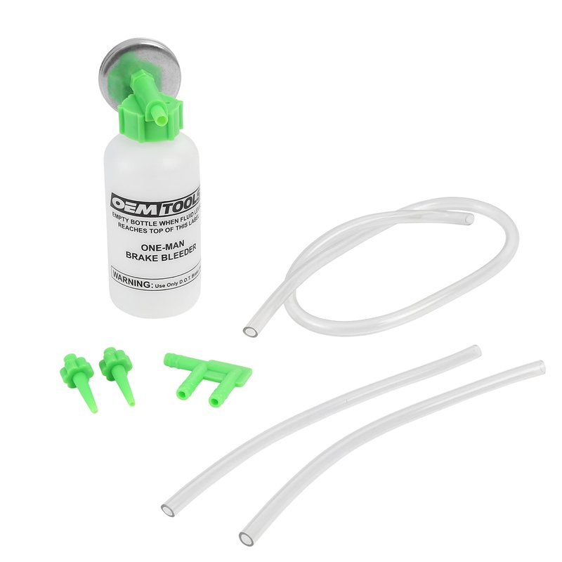 OEMTOOLS 25036 Bleed-O-Matic One-Man Brake Bleeder Kit, Featuring An Opaque Brake Bleed Bottle / Transparent Hoses and Tapered Fittings, No Mess Brake Fluid Bleeding , Multi color(Packaging May Vary)