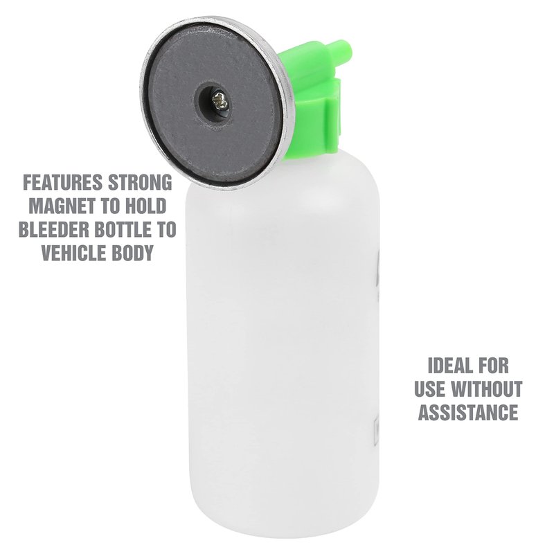 - ONE MAN OPERATION: No need to use the two-person method for your brake bleed; Attach the one person bleeder's reservoir to the rotor or similar metallic vehicle surface with the strong magnetic attachment and pump the brake; Easily drain brake lines