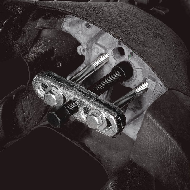 - SET INCLUDES: This steering wheel puller set includes a yoke, a pressure fastener, and 3 sets of pulling fasteners with washers and swivel; Easily tackle any steering wheel repair project