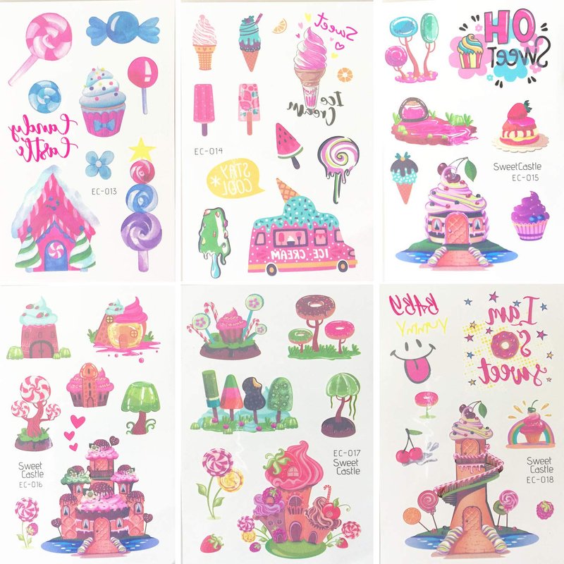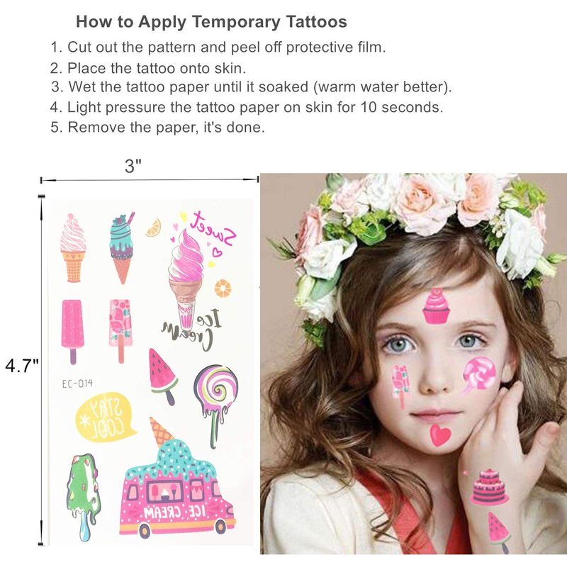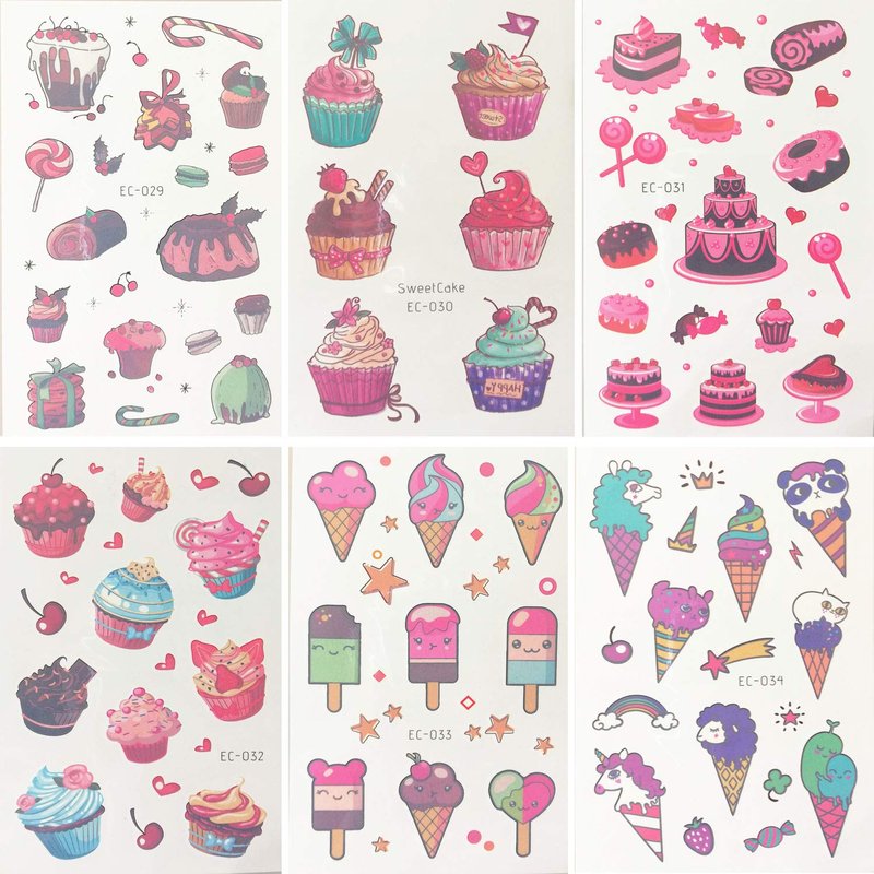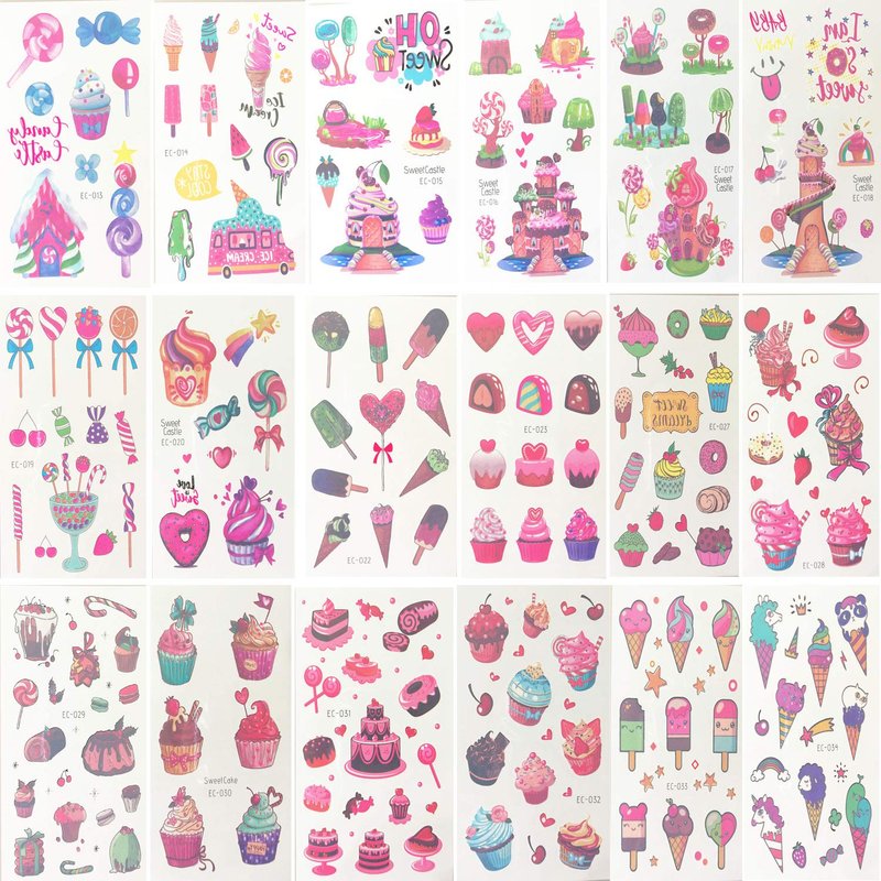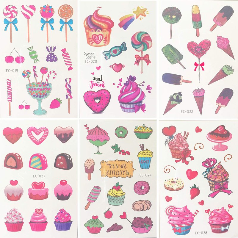 - -Individually Wrapped: Each sheet of Dessert tattoos measures 3 x 4.7 inches and is individually wrapped ; Great gifts as party favors and sweet summer party supplies, gift bag fillers, party bags, decorations, goodie bags for birthday parties