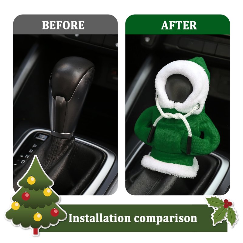 - 🎄 New Upgraded Design - Newest design this Christmas! Christmas red and green color plush hoodie for gear shifter knob! Mini shape and cute design allows you to install it on your car's shift knob, the car interior looks more stylish and unique, full of festive atmosphere and envy of your coworkers and friends, this is a must-have Christmas car decorations!