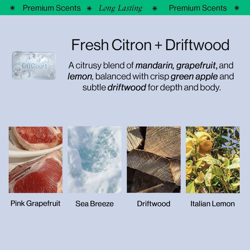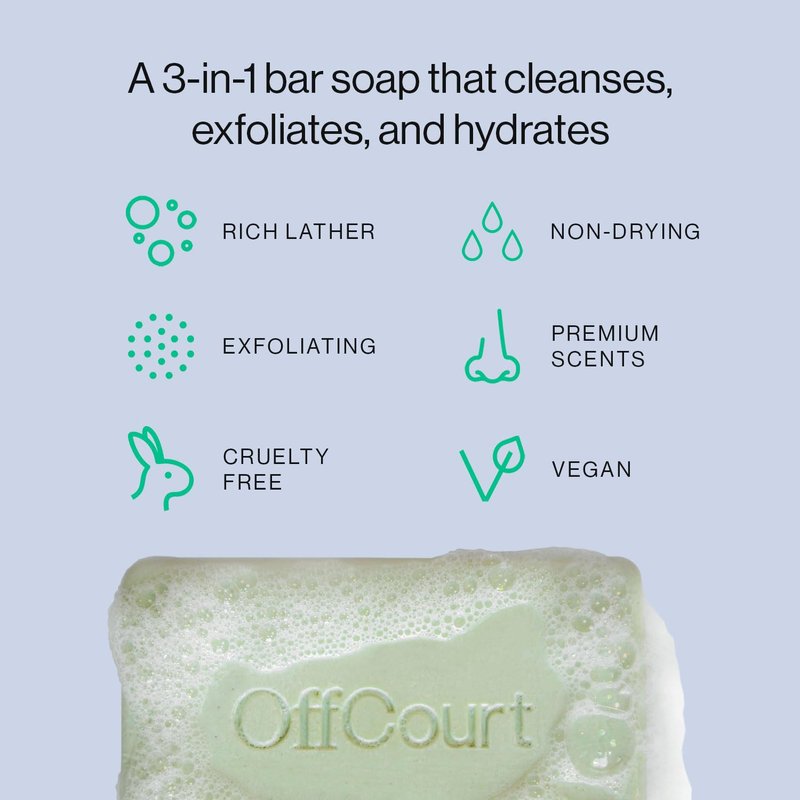 - Premium Unisex Fragrance: Your OffCourt exfoliating bar soap enhances your shower experience with a fresh scent that’s never overwhelming; Key notes: Bergamot, Meyer Lemon, Black Pepper, Coconut Water, Geranium, Sandalwood, Cedarwood and Patchouli