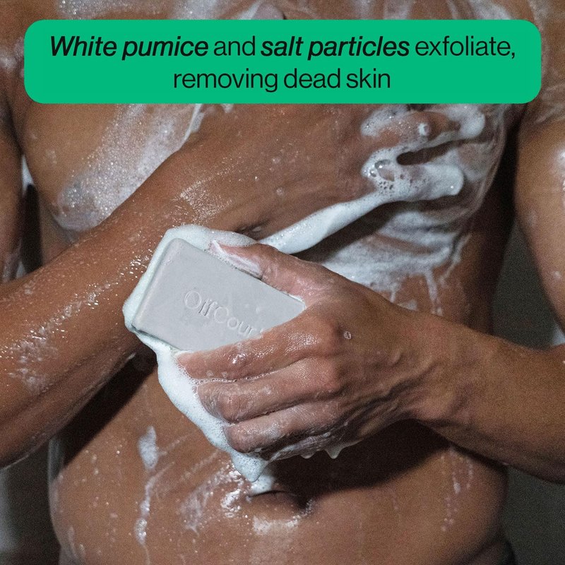 - Medium Level Exfoliation: Your OffCourt exfoliating soap blends salt and white pumice particles for just the right level of exfoliation; not too harsh yet effective enough for regular use; so smooth, fresh new skin can surface
