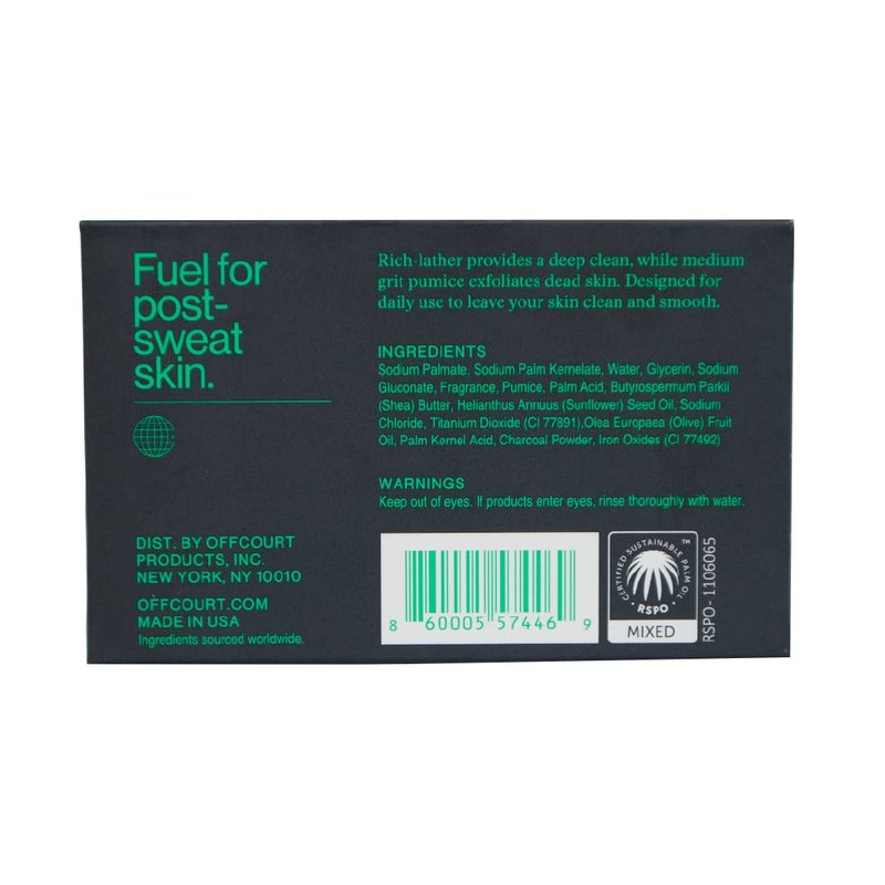 Cleanse & Revitalize Your Skin with This 3-in-1 Men’s and Women's Body Soap – Made in the USA, Designed for Daily Use & Inspired by Our Acclaimed Coconut Water + Sandalwood Body Spray. When you've worked up a mighty sweat, you need more than just ordinary soap. You need OffCourt Exfoliating Bar Soap. This lather-rich soap removes sweat, germs, and grime, but that's just the bare beginning. It also exfoliates, hydrates & nourishes your skin, for a bracing whole-body cleanse that leaves you feeling like a new man. The Secret's the Proprietary Formula Featuring Our: Planet-friendly palm-oil base, which quickly creates a rich lather for easy allover cleansing. Medium-grit mixture of salt & white pumice particles – strong enough to scrub away dead skin cells yet mild enough for every day. Non-drying blend of pure shea butter, olive oil & sunflower seed extract – loaded with vital nutrients & moisturizing emollients. Mingled scents of deep-woodsy sandalwood with notes of bergamot, Meyer lemon, black pepper, geranium, cedarwood & patchouli. It All Adds up to the Ultimate Shower Experience – An Awesome Way to Relax & Refresh After Strenuous Exercise. What's more, all ingredients are responsibly sourced, so you can feel good about your purchase. Here's a tip for the gals: This premium soap makes a great gift for birthdays & holidays – super stocking stuffer, too.
