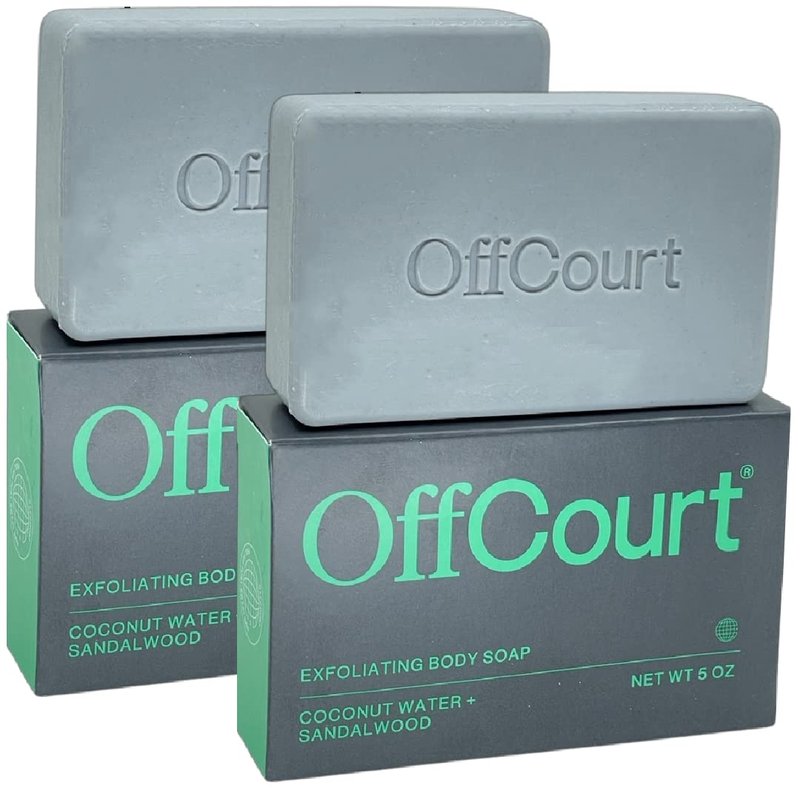 OffCourt Exfoliating Body Soap – Deep Cleansing & Exfoliating Soap for Men & Women. Non-Drying Bar - Medium Strength Scent of Coconut Water + Sandalwood. For All Skin Types (5oz, 2 Pack)