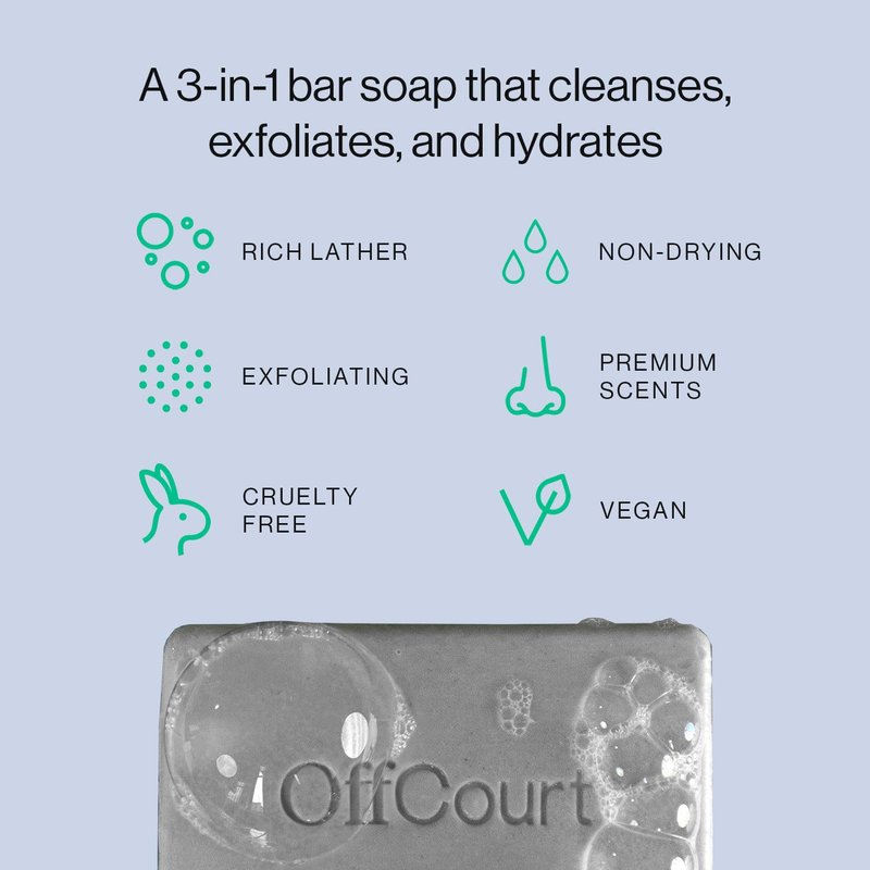 - Premium Unisex Fragrance: Your OffCourt exfoliating bar soap enhances your shower experience with a fresh scent that’s never overwhelming; Key notes: Bergamot, Meyer Lemon, Black Pepper, Coconut Water, Geranium, Sandalwood, Cedarwood and Patchouli