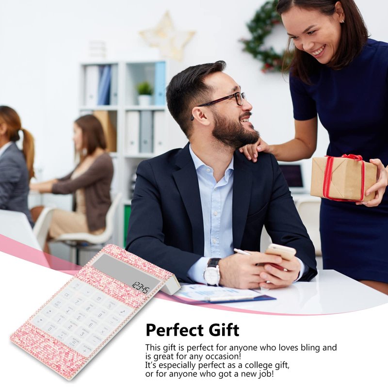 Office Calculator with Bling Crystal Decorative with Calendar Time Alarm Clock for Fashionable Desk Accessory, Office or Home Gift (Pink)