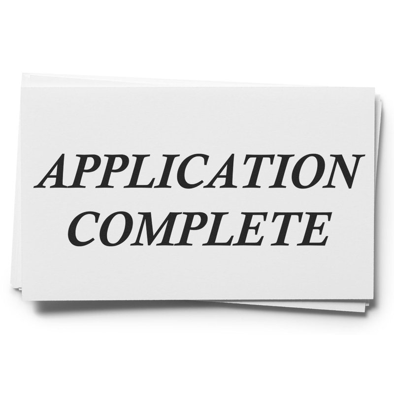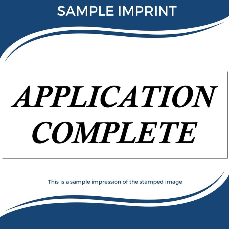 Measuring at 7/8" tall by 2-1/4" wide, this stamp is perfectly sized for all your legal, financial, and miscellaneous documents. Its message, "Application Complete," is not just a statement; it's a declaration of efficiency, allowing your team to swiftly process and route applications without confusion. This stamp is an indispensable tool for maintaining a smooth workflow and ensuring that every application is acknowledged with a clear, unmistakable mark.