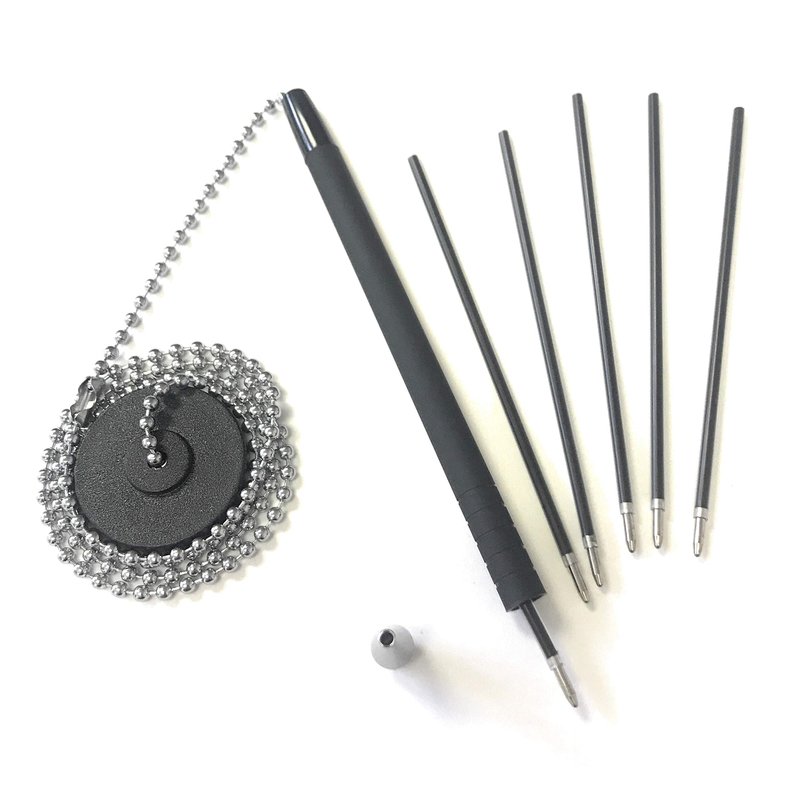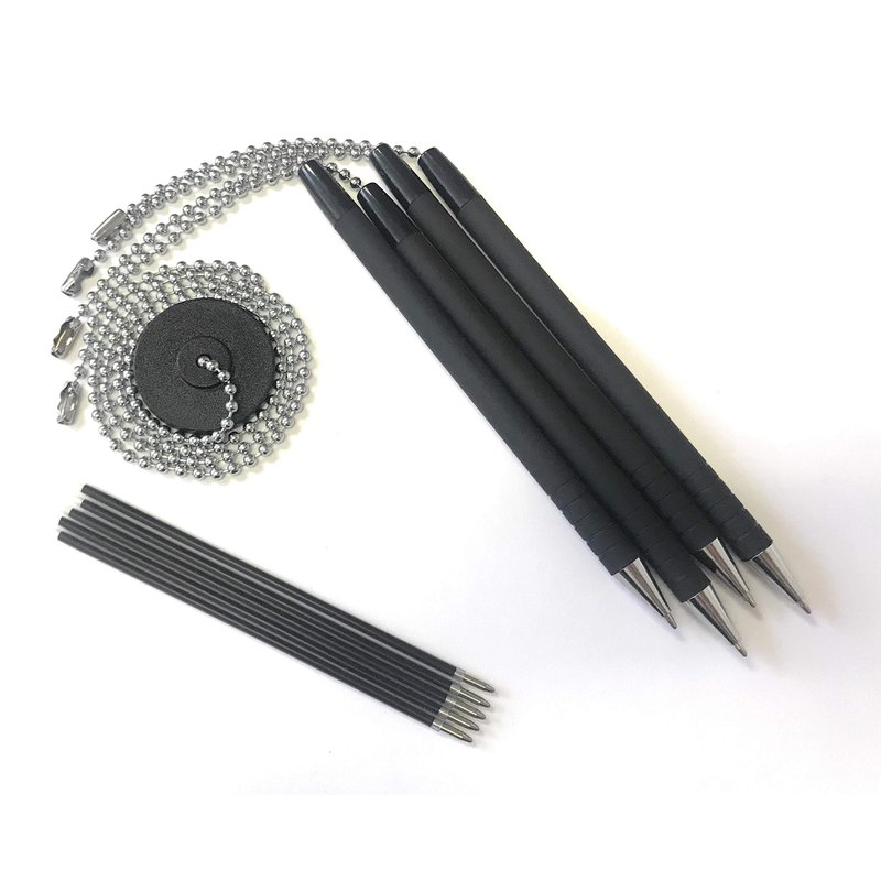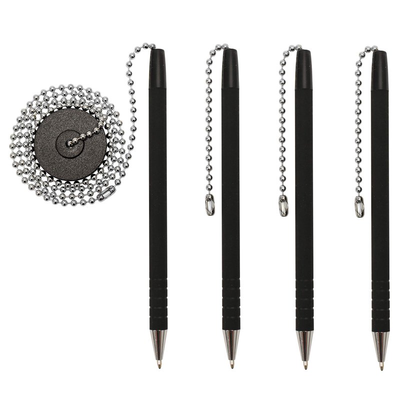 - 4 Pens with Chain Attached per Pack: Pen comes with 3 additional backups. Whenever it runs out of ink, simply snap a refill on to the chain. Offers a reliable writing experience but also provides you with three backup pens right at your fingertips.
