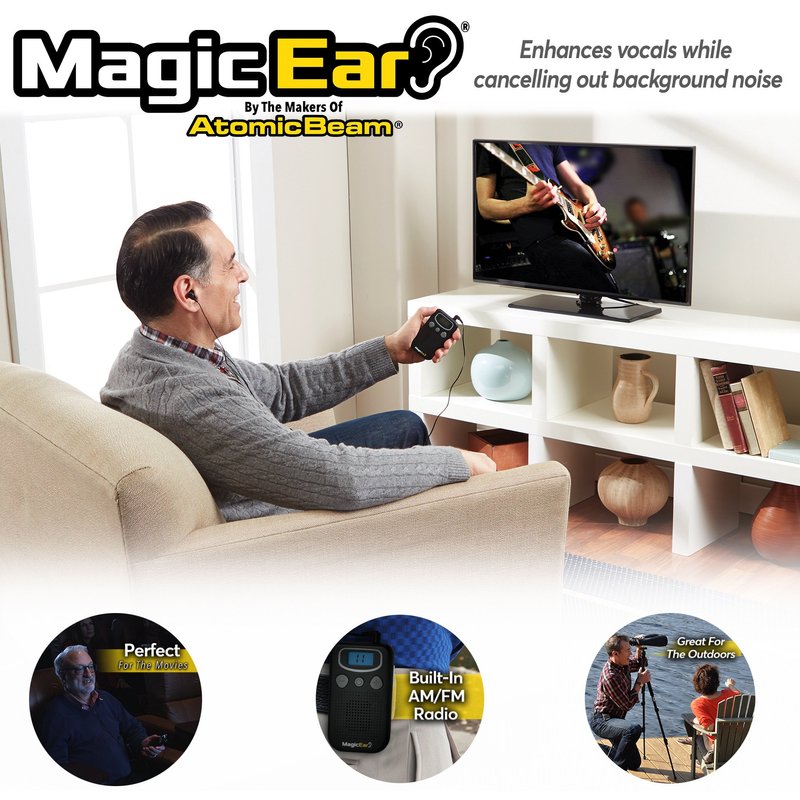 Official As Seen On TV Atomic Beam Magic Ear Personal Sound Booster by BulbHead, Portable Hearing Amplifier Enhances Vocals, Cancels Out Background Noise (1 Pack)