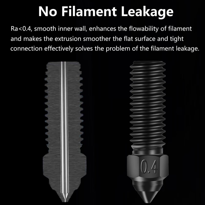 - High Precision - Ra<0.4, smooth inner wall, the inner wall enhances the flowability of filament and makes the extrusion smoother, no burr on the orifice makes the feeding of the filament smoother and no leakage, the flat surface and tight connection effectively solves the problem of filament leakage.
