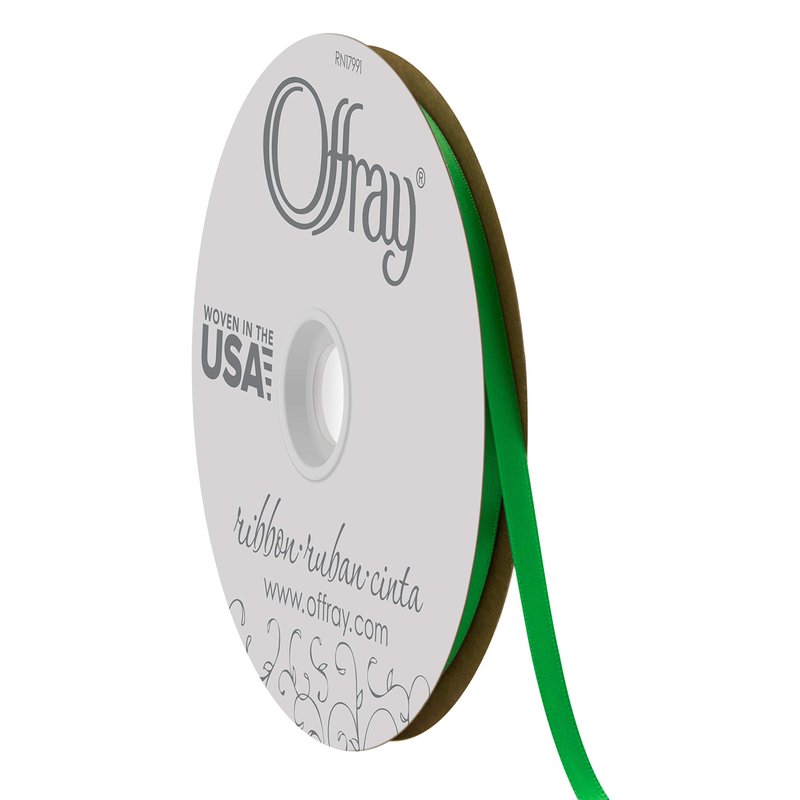 Offray 1/4" Wide Double Face Satin Ribbon, 100 Yards, Emerald Green