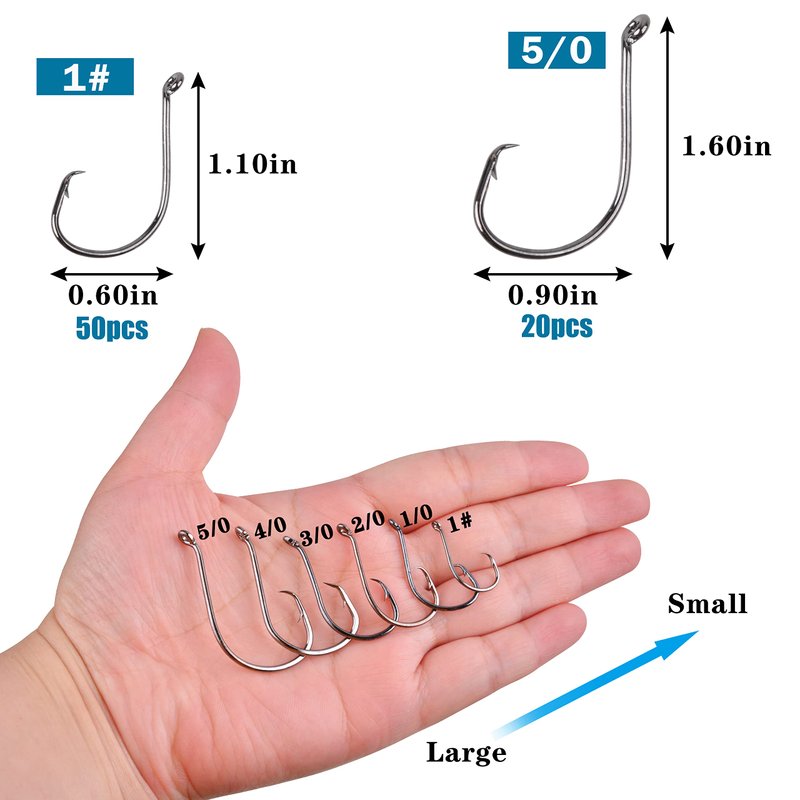 - PACKAGE INCLUDED:180pcs/box,1#:50pcs,1/0:50pcs,2/0:20pcs,3/0:20pcs,4/0:20pcs,5/0:20pcs in a free reusable handy box