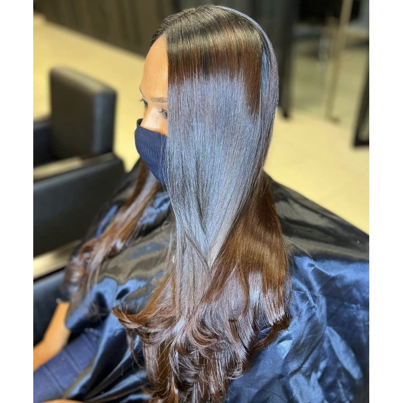 - STEP 4 - Dry your hair with a Dryer and use the hair straightener strand by strand thin throughout the length of your hair of 5/10x - STEP 5 - Now you have a hair for 12 weeks* without frizz.