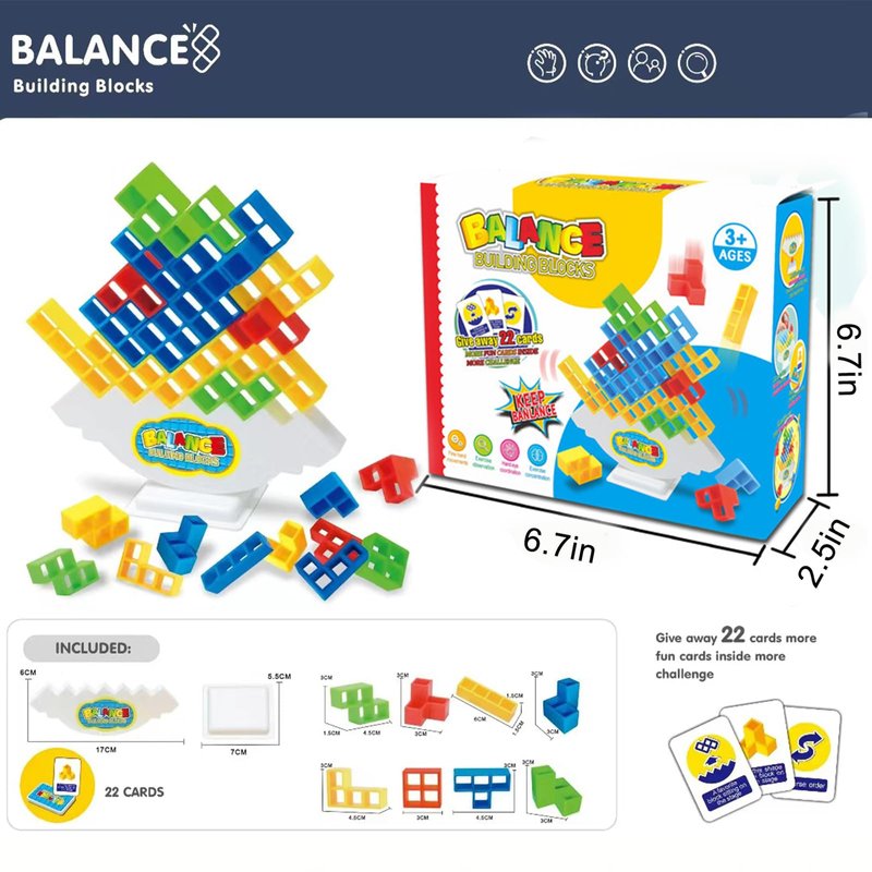 - IDEAL GIFTS FOR CHRISTMAS, BIRTHDAY. This set includes 64 Tetra blocks in 4 colors、1x stacking base、22x Draw Cards