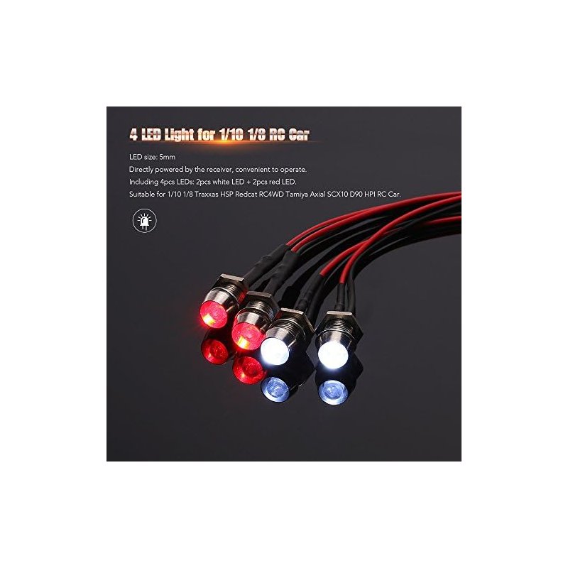 The one is a set of professional and practical Led light for rc trucks rc cars.100% brand new and high quality 4-LEDs RC LED Light Kit.