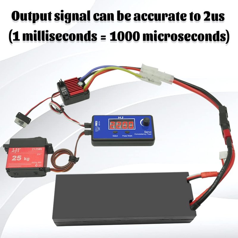 - 【High Srecision】The RC ESC tester used to compare the performance steering gear control of the steering servo output signal can be accurate to 2us (1 milliseconds = 1000 microseconds)