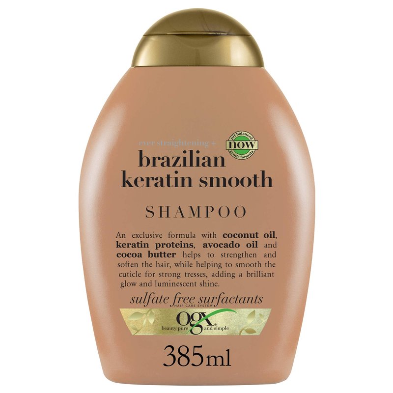 OGX Ever Straightening + Brazilian Keratin Therapy Smoothing Shampoo with Coconut Oil, Cocoa Butter & Avocado Oil for Lustrous, Shiny Hair, Paraben-Free, Sulfate-Free Surfactants, 13 floz
