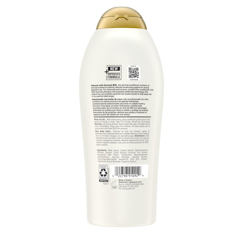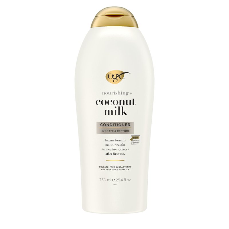 - HYDRATE & RESTORE: This 25.4-fluid ounce bottle of OGX Nourishing + Coconut Milk Conditioner with an intensely moisturizing formula immediately softens hair after the first use & helps strengthen & hydrate dry, damaged, & frizzy hair