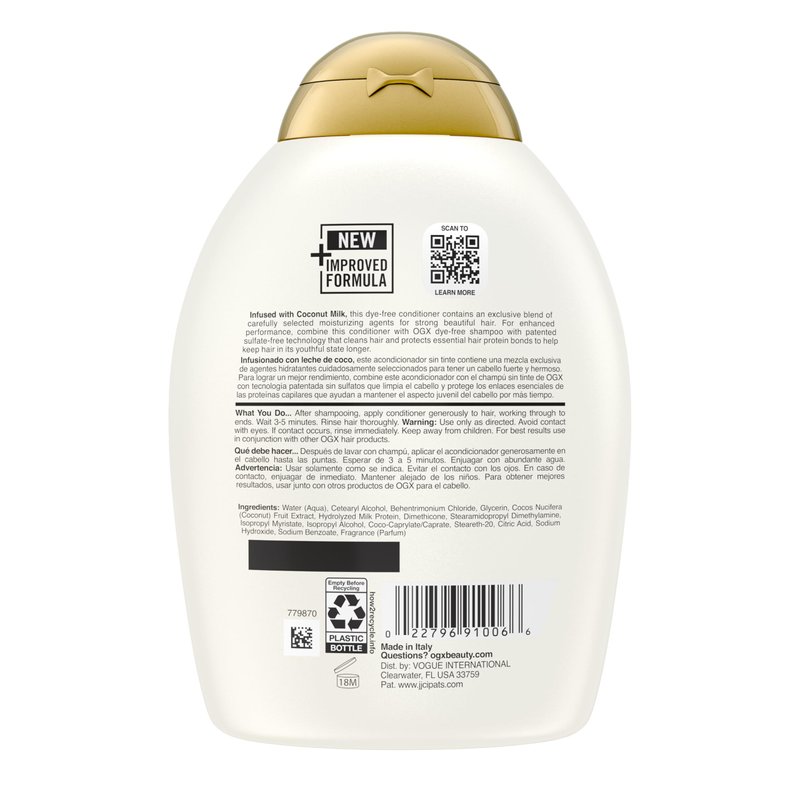 OGX Nourishing + Coconut Milk Conditioner, Hydrating & Restoring Conditioner Moisturizes for Soft Hair After the First Use, Parabens-Free, Sulfate-Free Surfactants, 13 fl. Oz