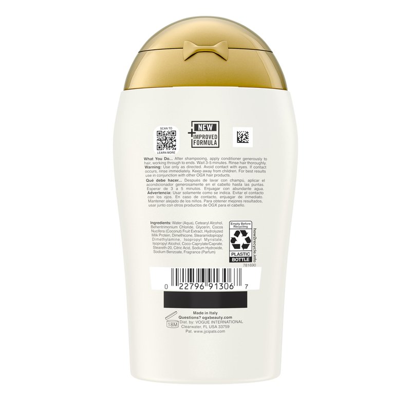- HYDRATE & RESTORE: This 3-fluid ounce bottle of OGX Nourishing + Coconut Milk Conditioner with an intensely moisturizing formula immediately softens hair after the first use & helps strengthen & hydrate dry, damaged, & frizzy hair