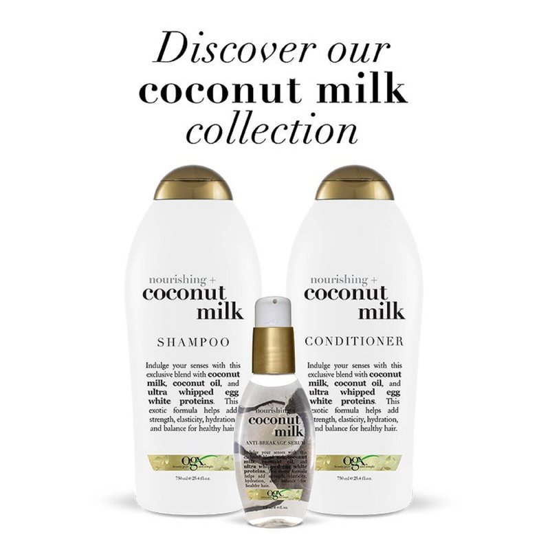 - TRANSPORT HAIR TO THE TROPICS: This 25.4-fluid ounce bottle of OGX Nourishing Coconut Milk Shampoo helps strengthen and hydrate hair, leaving it looking glowing, healthy and beautiful with every wash