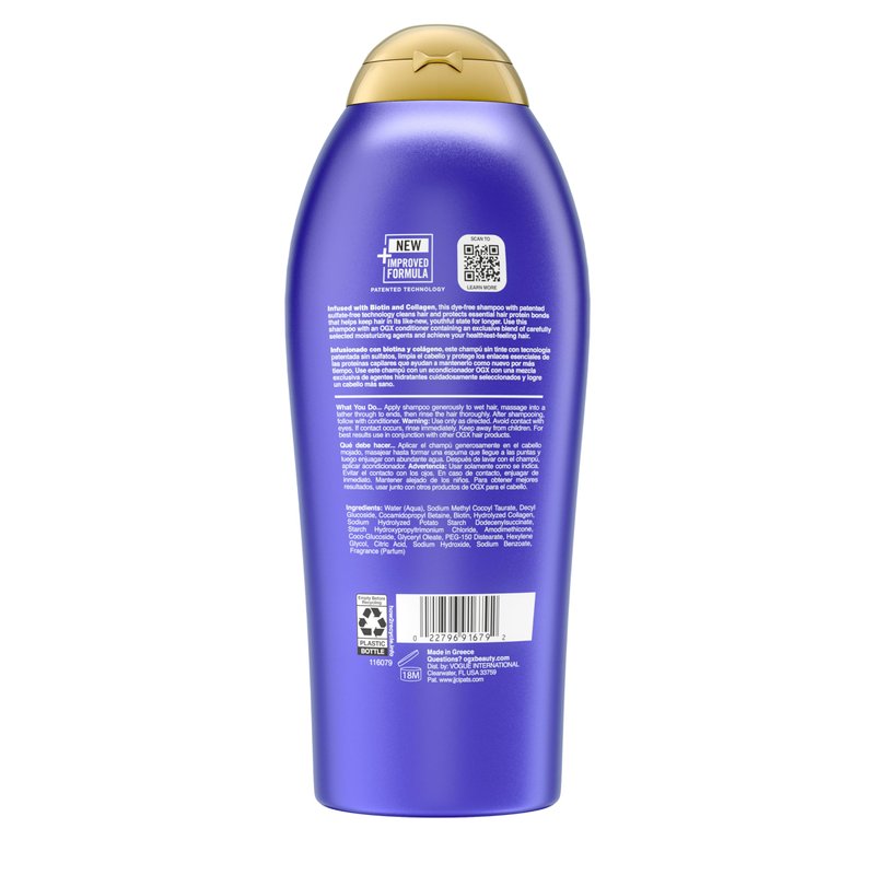 - VOLUME & TEXTURE: The 25.4-fluid ounce bottle of OGX Thick & Full + Biotin & Collagen Volumizing Shampoo with a nutrient-infused formula to give your hair 72+ hours of volume & body & healthy hair in just one wash