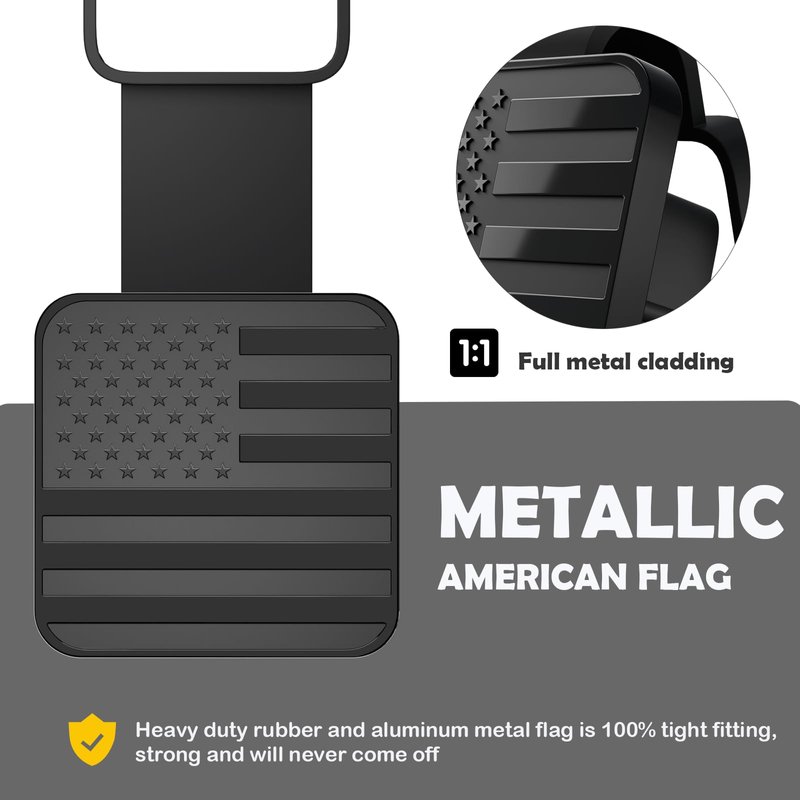 OGYE 2 Inch Trailer Hitch Cover with American Flag, Metal Trailer Hitch Cover Fit for 2 Inch Hitch Receivers Class 3 4 5, 2'' Rubber Hitch Tube Cover Plug Cap (Black)