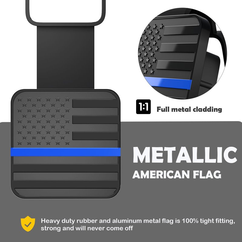 OGYE 2 Inch Trailer Hitch Cover with American Flag, Metal Trailer Hitch Cover Fit for 2 Inch Hitch Receivers Class 3 4 5,2'' Rubber Hitch Tube Cover Plug Cap (Black&Thin Blue line)