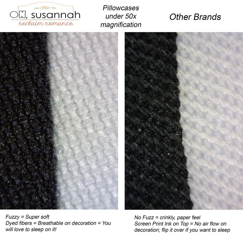 - Super Soft - Oh, Susannah uses top quality, 120 gram, silky soft microfiber fabric in all our pillowcases. And we use a permanent fiber dyeing process that leaves the decoration soft and breathable so you can sleep on the decoration and not even feel it. This is NOT a scratchy screen print on cheap paper thin cotton.