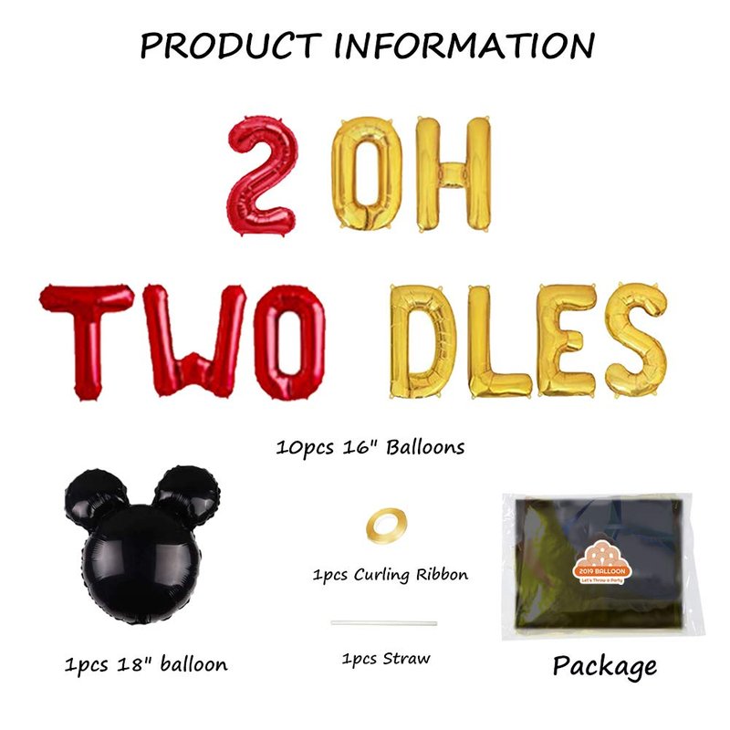 🐭You can stick the Red oh twodles birthday balloons to the wall or door, or string them as a banner and hang it above the table or along the hallway. All up to you !
