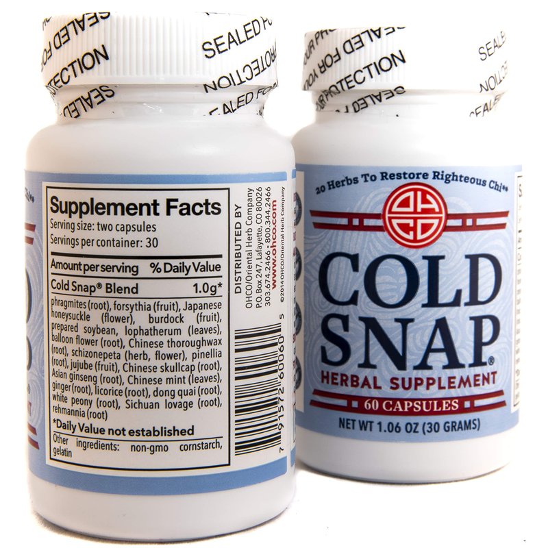 - HERBAL MEDICINE - Using the tradition of Chinese herbal medicine, OHCO's Cold Snap has 20 herbs to restore righteous chi and build your body's strength to heal itself quickly and effectively.