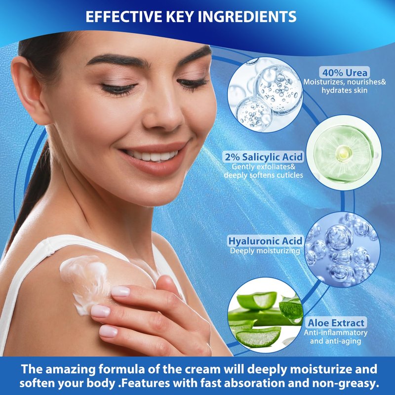 - 【WHY CHOOSE US】Our urea updated repair cream contains 40% urea content. Urea content<40% can not possess effective penetration capacity to our skin and it is difficult to soften the cuticle and improve the skin condition. Urea content=40% can intensive moisturizing dry cracked feet and keep skin alive. Urea content>40% can easily cause damage to the skin barrier and bring itching and redness.