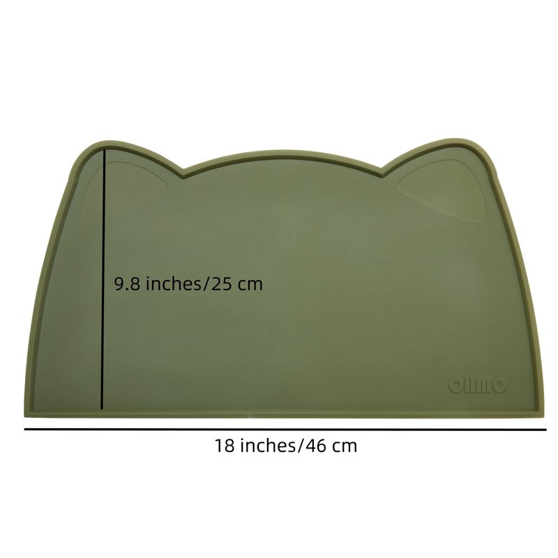 OHMO - Cat Food Mat, Silicone Pet Feeding Mat for Floor Non-Skid Waterproof Dog Water Bowl Tray, Easy to Clean Pet Placemat (Camo Green, 18 * 9.8'')