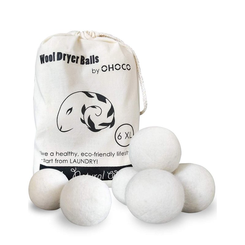 OHOCO Wool Dryer Balls 6 Pack XL, Organic Natural Wool for Laundry, Fabric Softening - Anti Static, Baby Safe, No Lint, Odorless and Reusable White