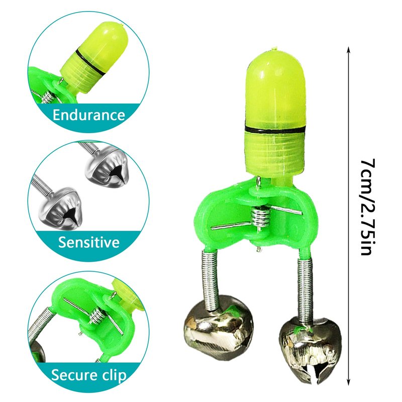 - ❤【High Quality】OHOH LED night fishing pole bite bait alarm light is made of plastic clip and dual metal bells.They are coupled together by spring that are nailed securely and will not fall off.Prefect for fishing at night in complete darkness and great for professional fishermen and fishing lovers.