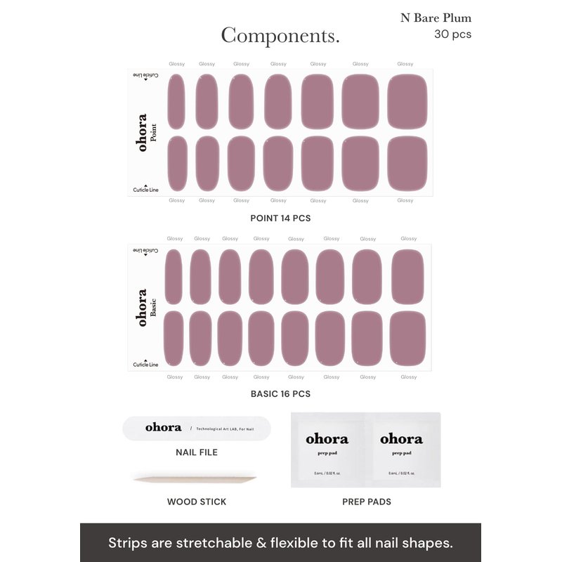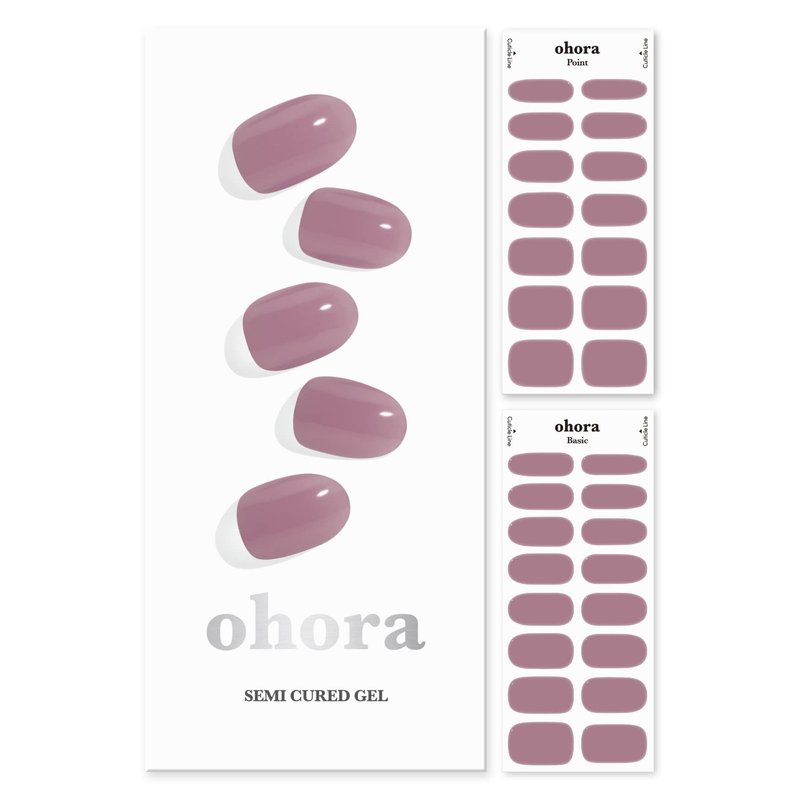 ohora Semi Cured Gel Nail Strips (N Bare Plum) - Works with Any Nail Lamps, Salon-Quality, Long Lasting, Easy to Apply & Remove - Includes 2 Prep Pads, Nail File & Wooden Stick