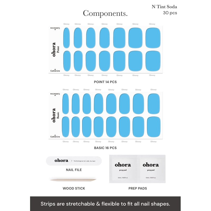 ohora Semi Cured Gel Nail Strips (N Tint Soda) - Blue, Tint, Works with Any UV/LED Nail Lamps, Salon-Quality, Long Lasting, Easy to Apply & Remove - Includes 2 Prep Pads, Nail File & Wooden Stick